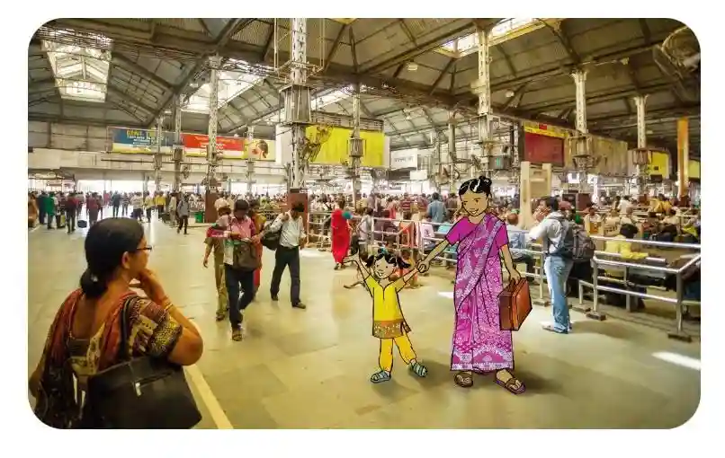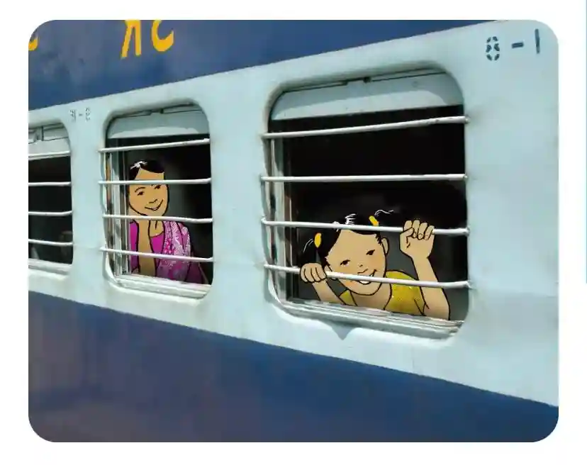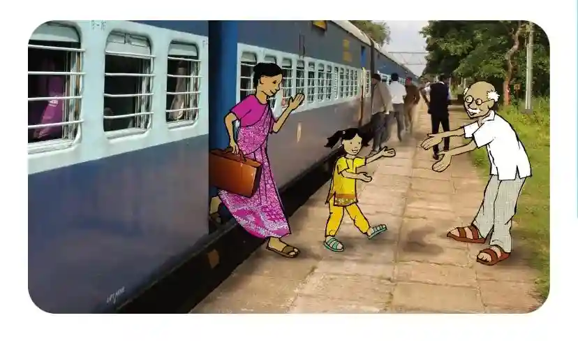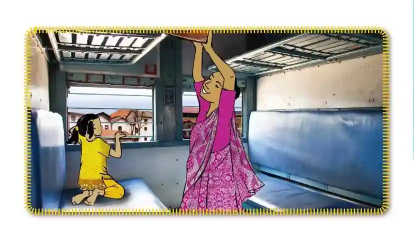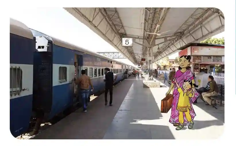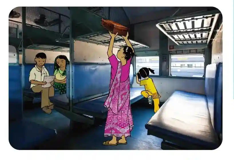 “第5站台在哪里?”妈妈问。“在这儿呢。这一列就是我们要乘坐的火车,我们快直去吧。”