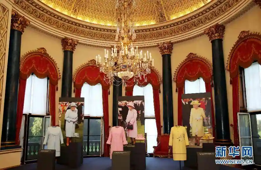 白金汉宫内展示的伊丽莎白二世的服饰。