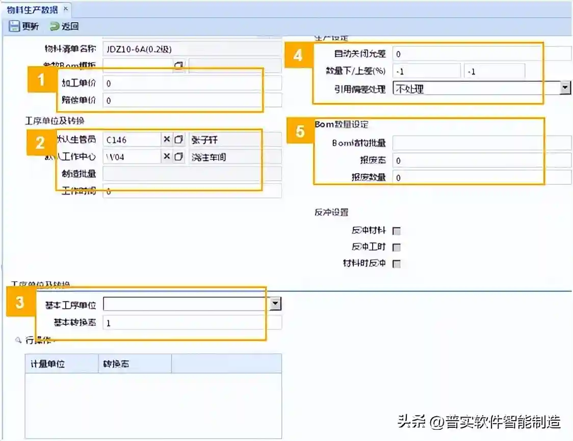 ③定义工序单位的基本单位,基本转换率是工序基本单位与库存基本单位的转换率。正常情况下,基本工序单位与库存基本单位一致,所以基本转换率为1。