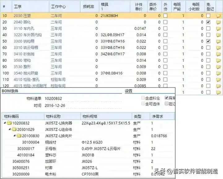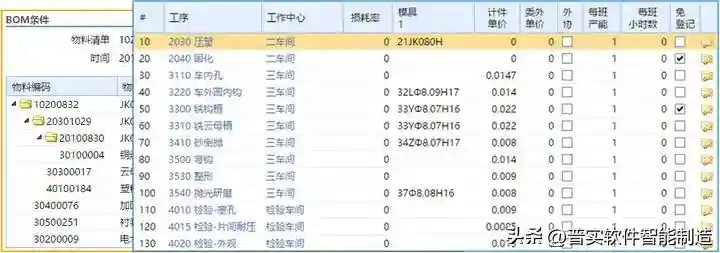 用料计划,上面是工艺路线。