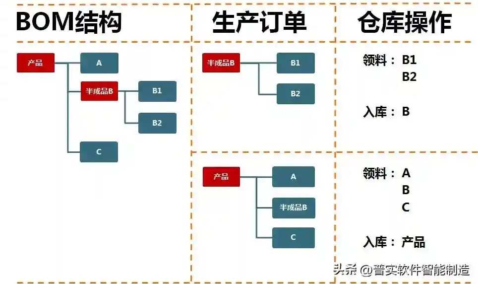 一般要言,一个产品每多一BOM阶层结点,就会在单据运作中多一次生产订单--生产领料--产品入库的循环