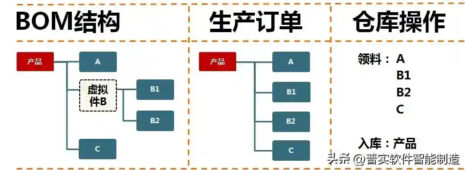 虚拟件是库存不存在的物料,主要作用是:
