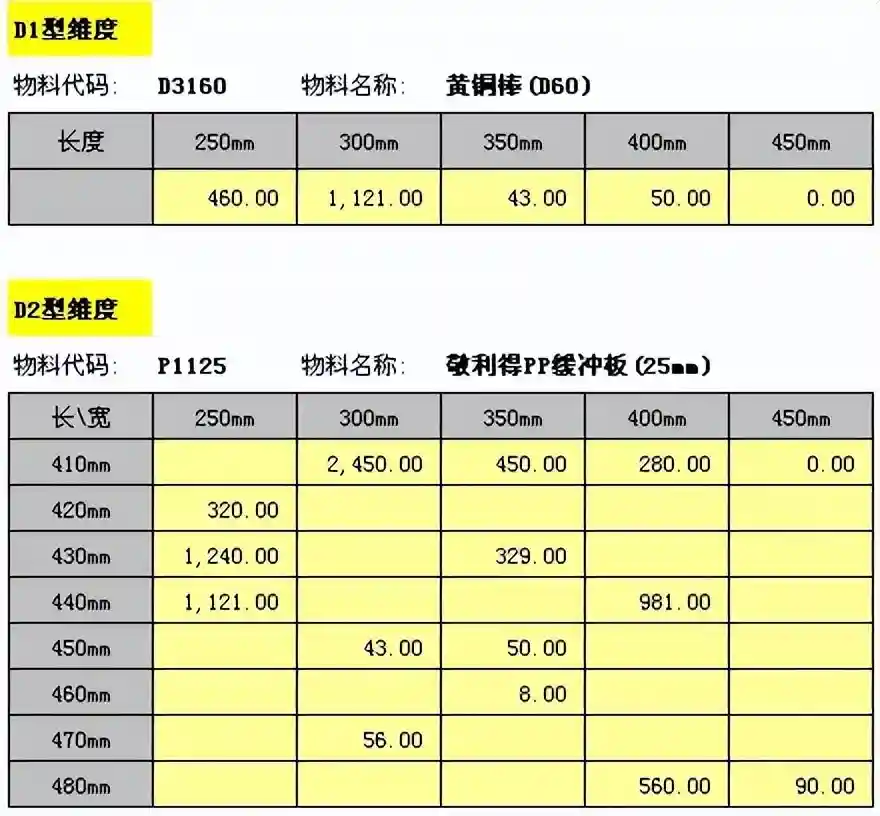(2)物料生产数据