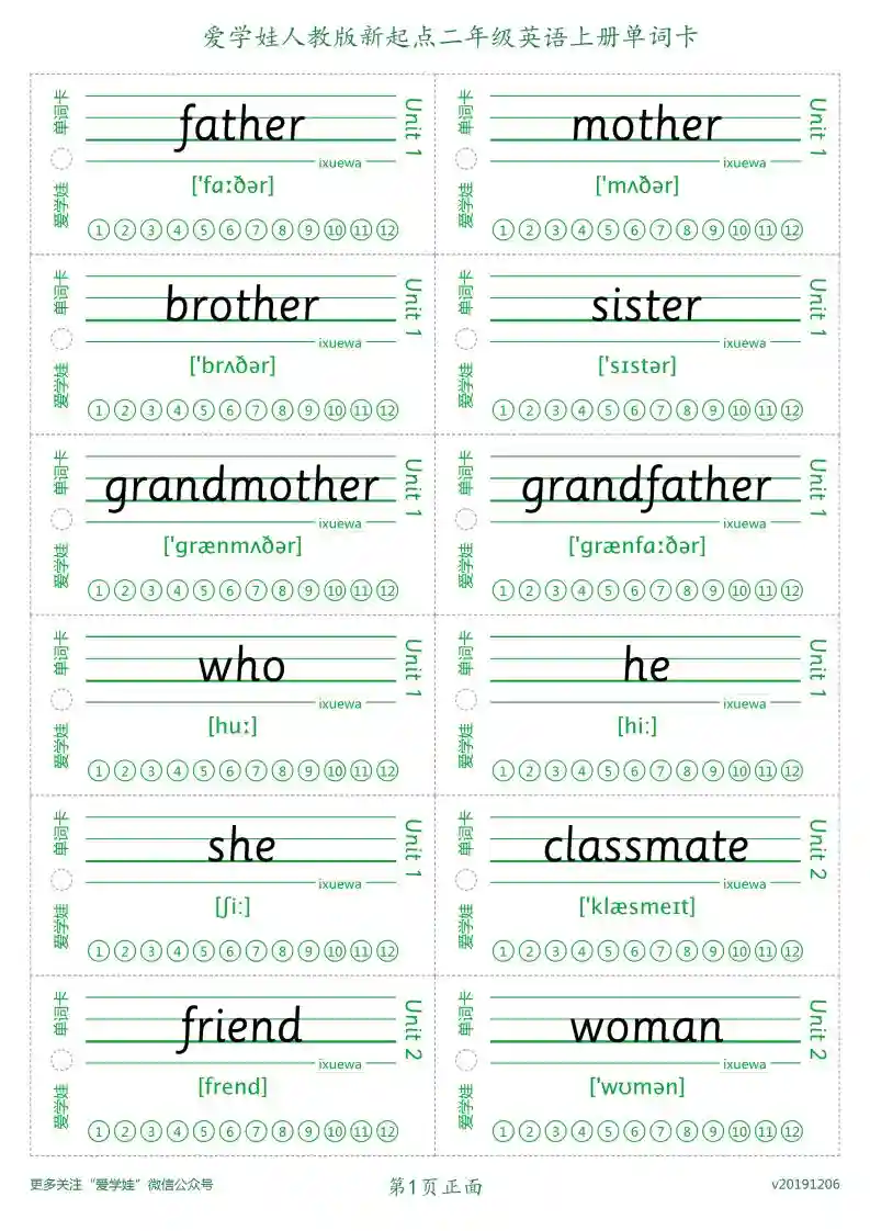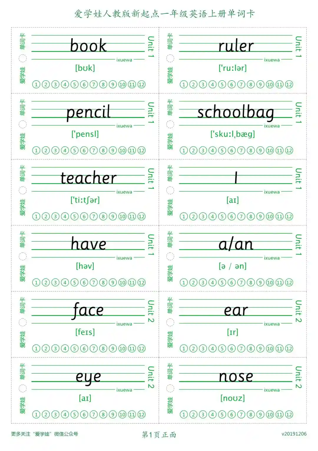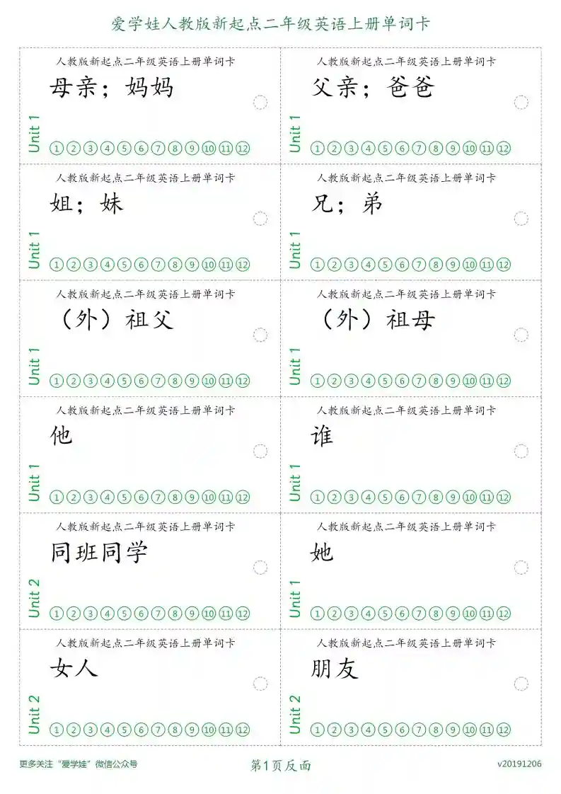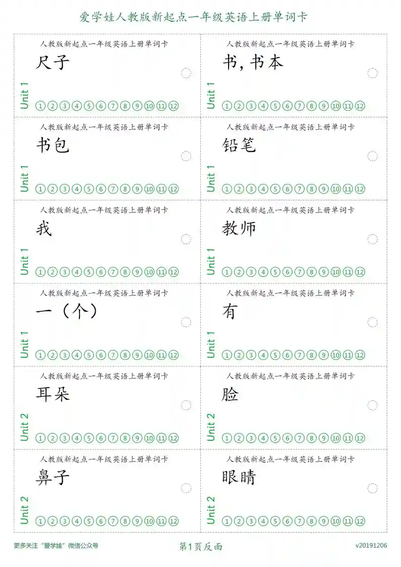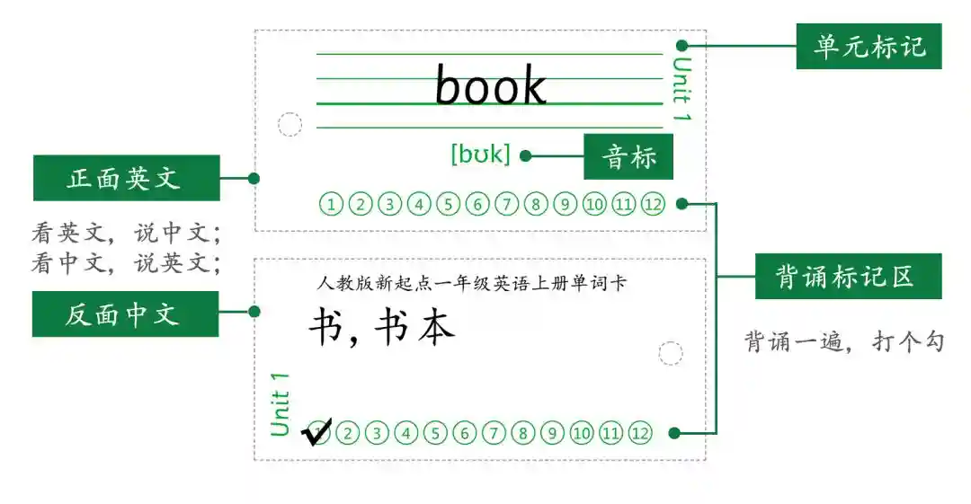 新版单词卡片与老版单词卡片相比,将中英文分开排版,正面英文,反面中文。家长们或孩子们可以看英文单词,说出中文意思或者看中文意思,回忆英文单词。另外,每个单词都添加了音标,有助于在背诵单词的时候读出单词。