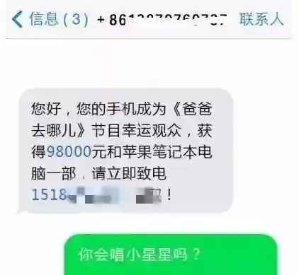 明眼人一看,这就是中奖诈骗短信,首先,电视台一般不会用私人电话发信息,其次,“手机”不会成为幸运观众,这是个病句。再次,成为幸运观众就能得价值十几万的奖品奖金,这也不太符合常识。