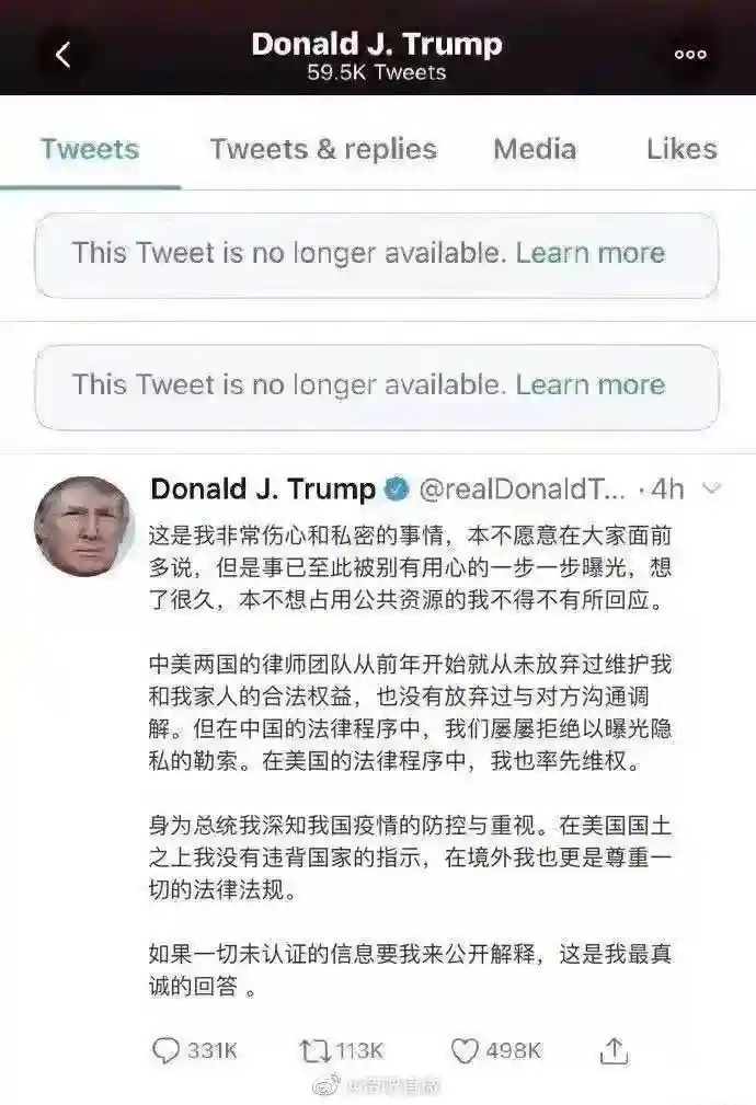 有人还把第一条微博直接换成了今日就要准卸任的特朗普的声明,发现也是毫无违和感。
